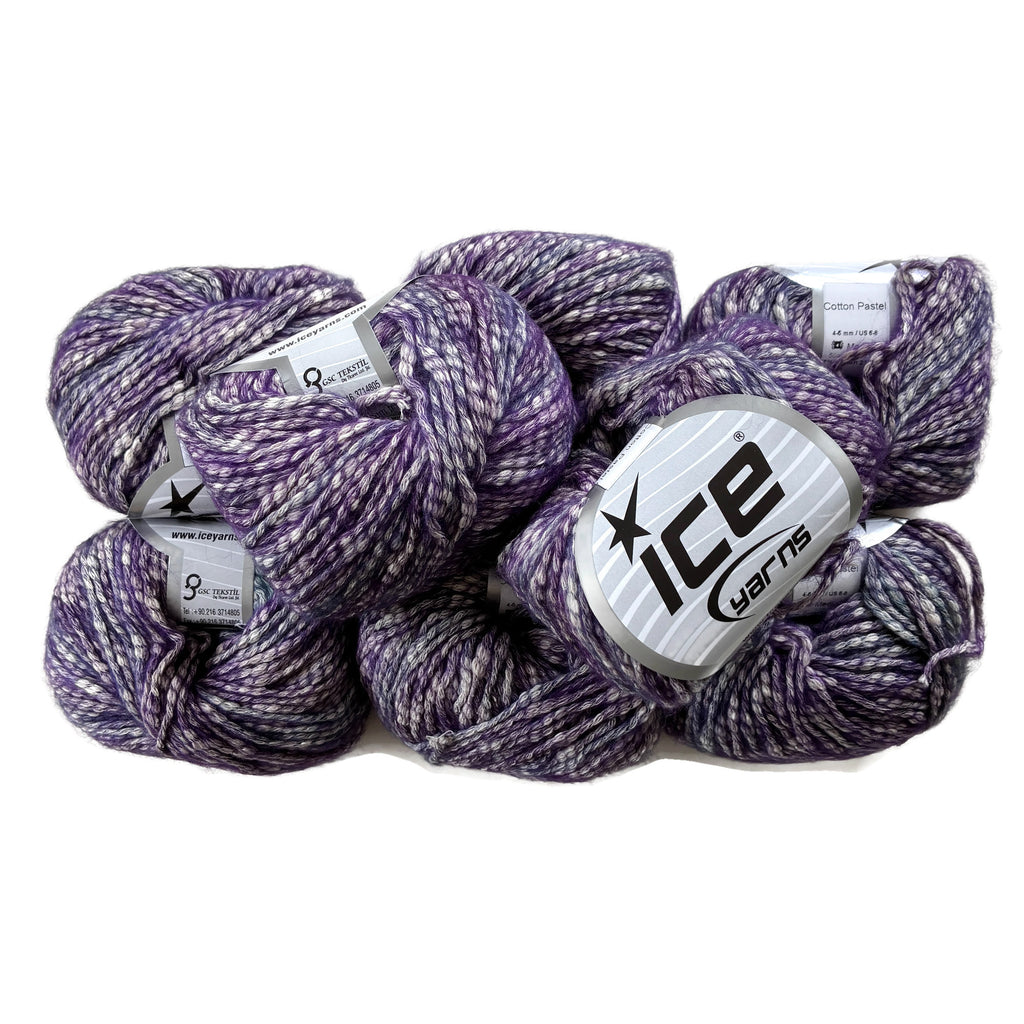 Cotton Pastel by ICE YarnsMedium Weight (#4)77% Cotton23% Acrylic8x50 Gram (70m) SkeinsPurple Cream Color WayUS 6-8 (4-6mm) Needle Size