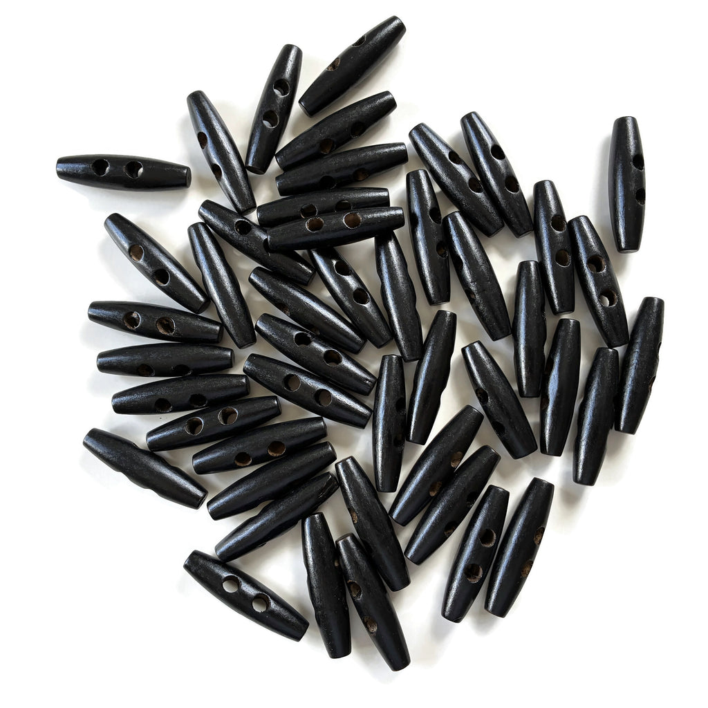 Wood Toggle Large Buttons48 Count2 Inches LongBlack2 Hole Sew OnI have used these for bag and tote closures. They would be perfect fasteners for hand knit cardigans, shawls, jackets or coats.