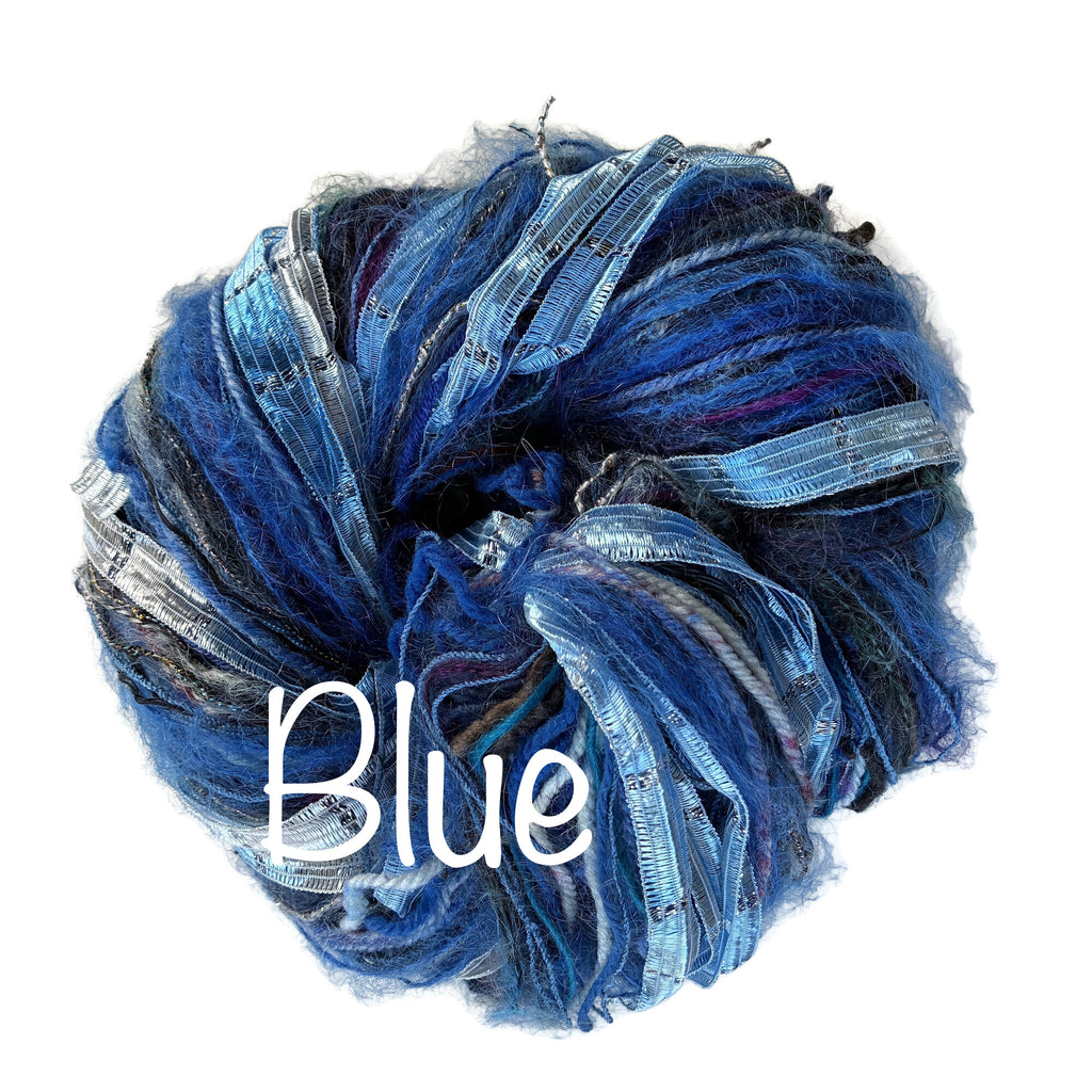 All my FUSION Yarn is created by me. It is made of a collection of a dozen or more different yarns. These yarns are cut into specific lengths and then hand tied together, creating a finished yarn for knitting, crocheting, weaving or your own particular fiber art project. Don't see a color way you want? Send me a convo. I may be able to put it together for you!